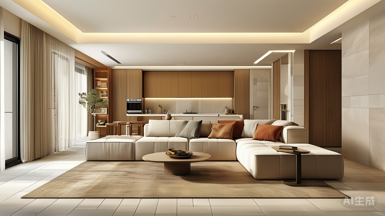 在不同功能区之间保持一定的连贯性同样重要。客厅可以选择大面积浅色系瓷砖营造宽敞明亮之感;卧室则更适合使用暖色调配合柔软地毯,以增强私密性和安全感;厨房卫生间考虑到实用性和易清洁的特点,光滑耐磨的表面材质更为合适。但即便如此,也要确保各个区域之间在风格上有呼应,避免造成割裂感。