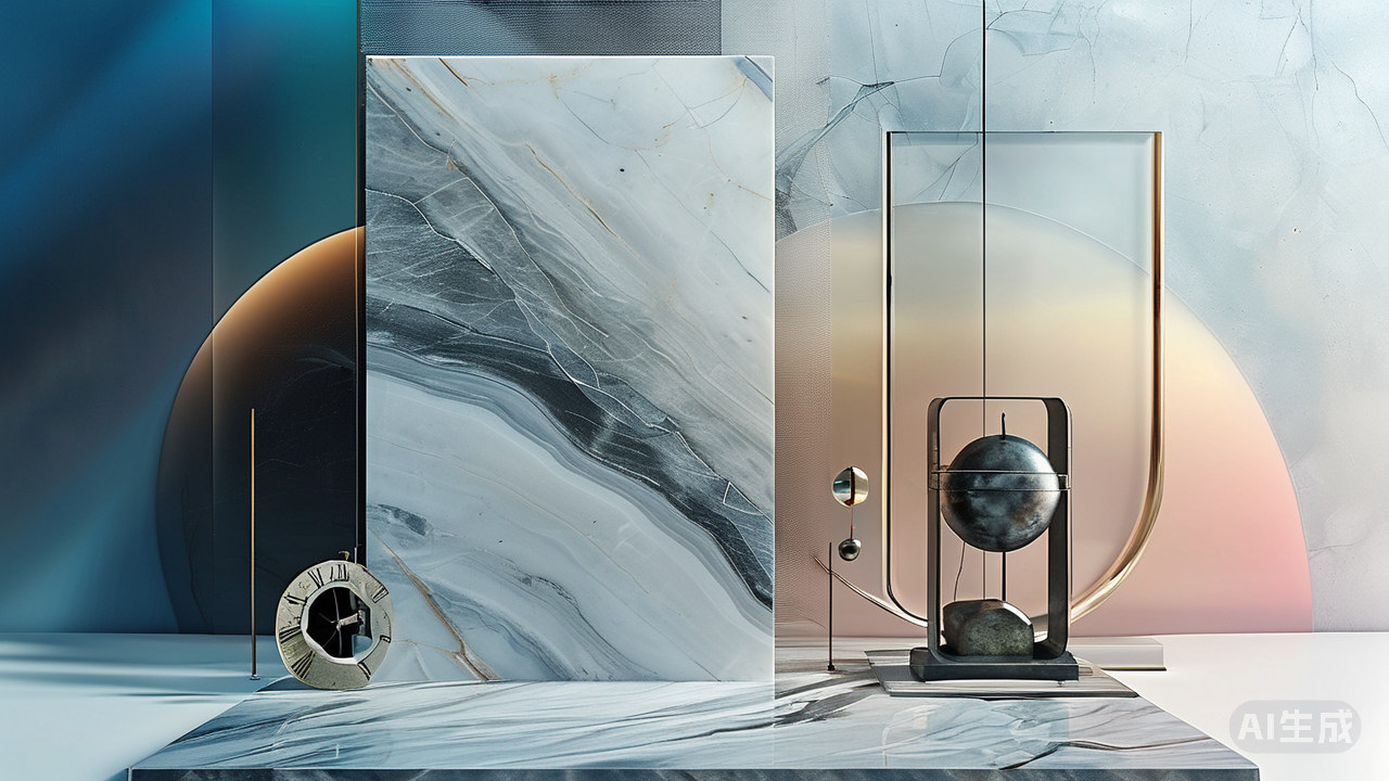 两者相遇,非简单的材质叠加。通体大理石以其天然纹理的深邃与温润,为空间注入大地般沉稳的呼吸;RDR大板则凭借其无界尺度的流畅与精工,赋予空间以现代苍穹的开阔与澄明。一者如磐石扎根,一者似长空铺展,在刚柔相济、古今交融的平衡中,真正的大宅风骨便悄然铸成。