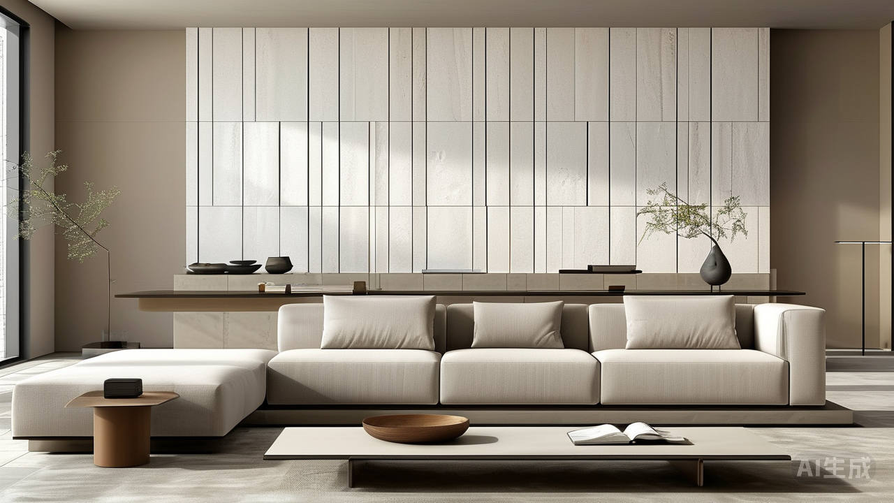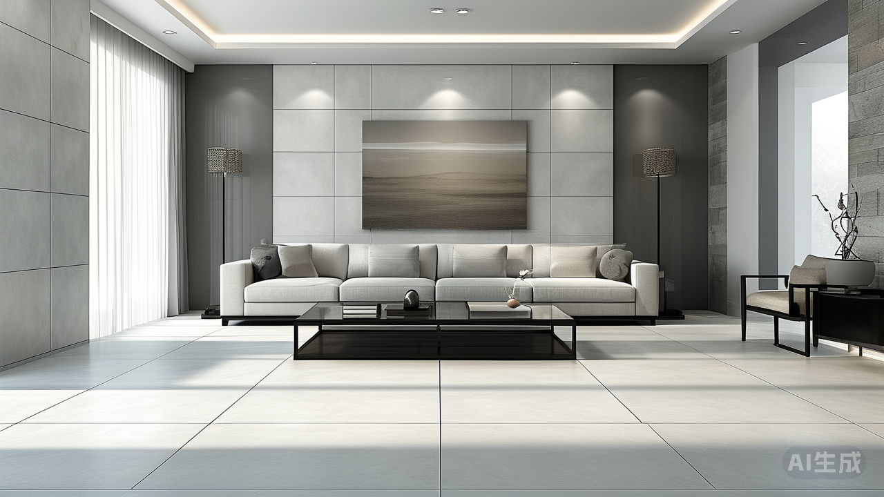 与横铺相反,竖铺让瓷砖长边垂直于长墙面,指向客厅深处。它如同在空间中竖起一道道挺拔的垂直线,引导视线一路向前延伸。这对于空间方正但层高偏低或略显呆板的客厅堪称点睛之笔。若客厅长度充足但高度稍逊,竖铺能巧妙拉长视觉纵深,使空间显得更修长、更高挑。若客厅入口正对主要功能区(如阳台),竖铺则能形成清晰的视觉走廊,空间秩序感油然而生。使用长条形瓷砖(如900x1800mm)竖铺,更能凸显现代感与大气的空间气质。