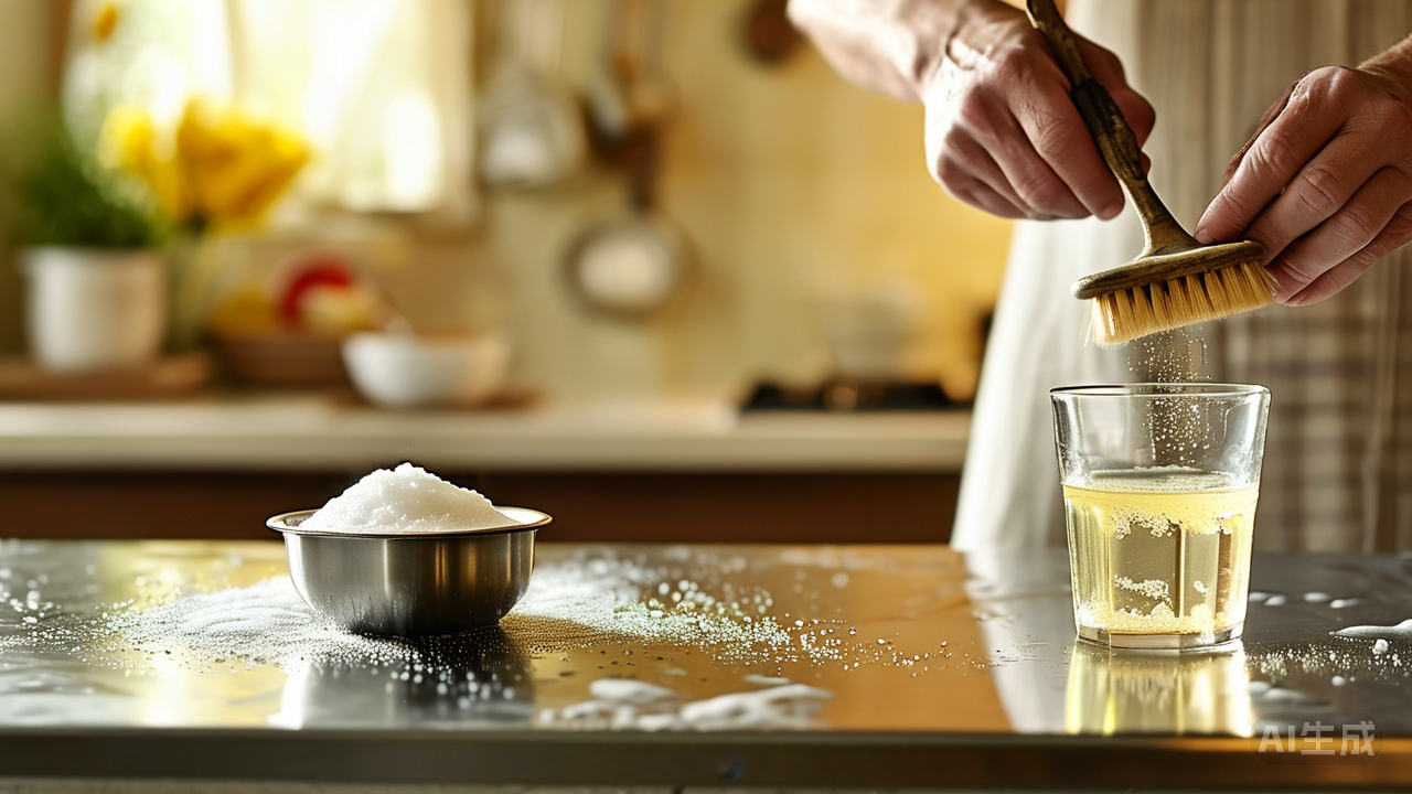 第二招:小苏打糊敷贴,对付顽固油垢 对付那些积年累月、顽固盘踞的厚重油污,小苏打将展现其强大力量。将小苏打粉末与少量清水调和成浓稠糊状,宛如敷面膜般涂抹在油垢之上,耐心静置20分钟。时间流逝中,小苏打悄然深入油污深处进行吸附与分解。随后取一柄旧牙刷或软毛刷,轻力刷拭污渍区域,最后用湿布彻底擦净。重油污区经此“敷疗”,焕然如新。