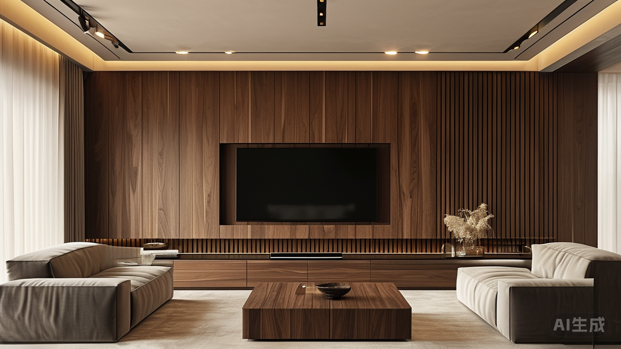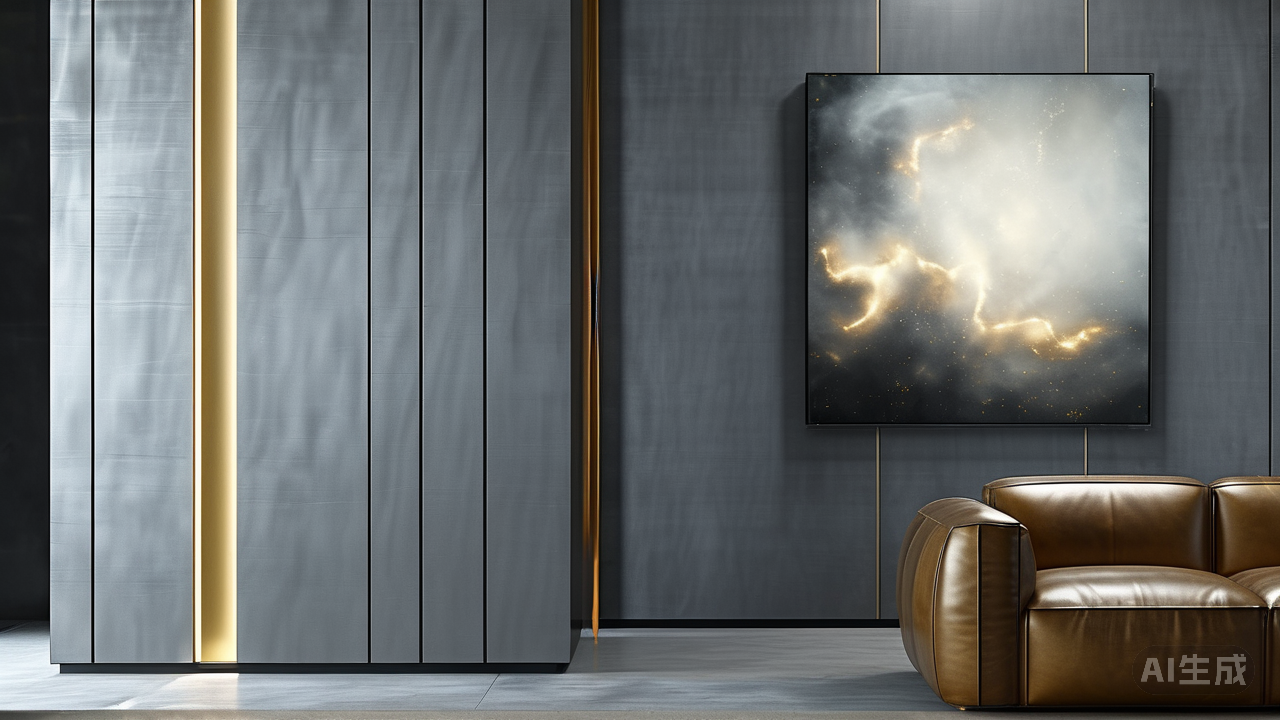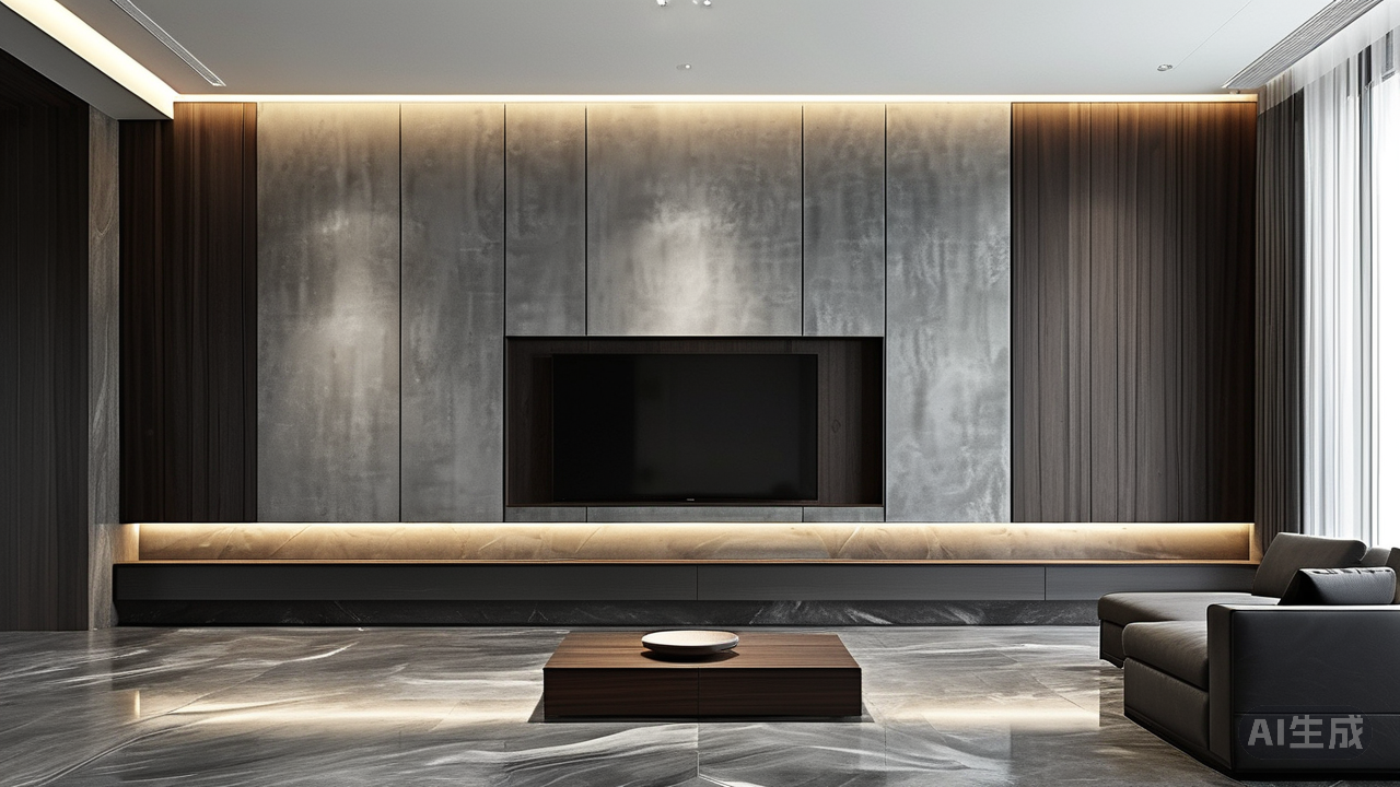 这种高级灰调,恰如城市天际线在暮色中的剪影,稳重、内敛,不动声色却蕴含力量。它包容万物,既不喧宾夺主,又为每一处精心挑选的软装与艺术品铺垫出最适宜的底色舞台。 为呼应主色调的优雅格调,材质选择上我格外用心:客厅地面是意大利进口的哑光灰大理石,低调的质感与纹理,如同微风吹过静谧湖面留下的皱痕;墙面则选用了特殊肌理的灰色艺术漆料,触感如丝绸般温润柔和,近看能发现细微的光泽流动,远望又浑然一体;搭配深色胡桃木的电视墙柜体,其天然木纹在灯光下显出岁月沉淀的醇厚质感,仿佛时光也在这里温柔驻足。