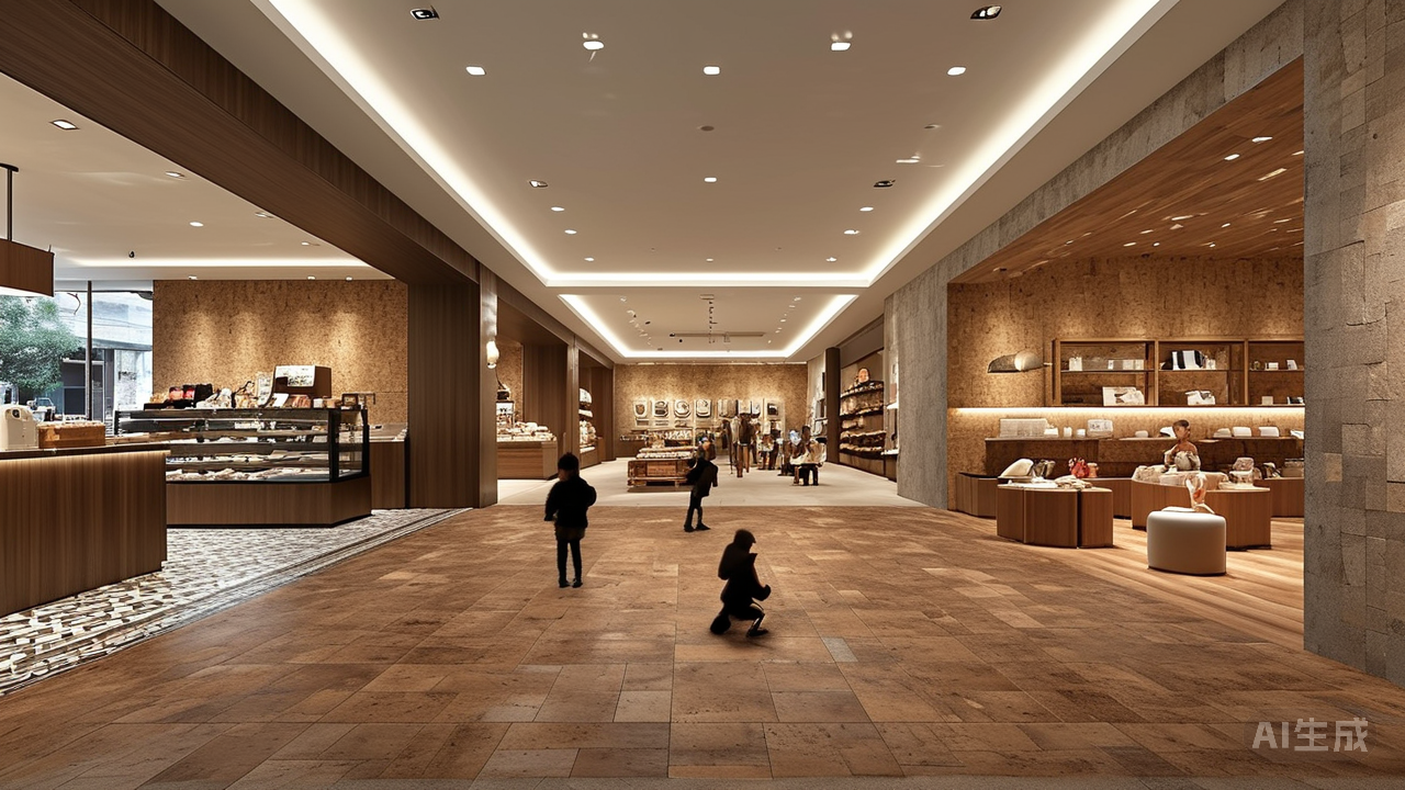 商业空间地面设计:莱尔棕如何营造温暖舒适的消费环境?在竞争激烈的商业环境中,空间氛围已成为无声的销售力。冰冷坚硬的地面材质、刺目反光的高饱和色彩,常常在无形中筑起一道消费心理屏障。顾客步履匆匆,难以驻足,空间的温度与归属感成为奢侈品。 莱尔棕——这抹沉静而温暖的中性色调,正悄然成为破解困局的色彩密钥。它源于大地深处的泥土,又似秋日烘烤的肉桂,在稳重中透出融融暖意。当它铺展为商业空间的地面主调,一种无声的邀请便随之蔓延:沉静的暖棕基底为空间注入大地的包容与安宁,顾客的脚步自然放缓,情绪在无声中被熨帖抚平。这种源于自然界的色彩具有天生的亲和力,能有效缓解视觉压力,营造出被包裹的松弛感。