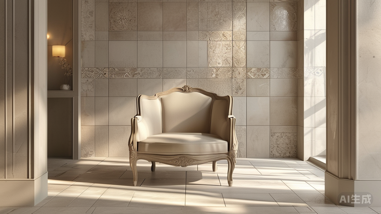 雕花点睛:立体肌理的浪漫诗行 若说柔光是沉默的乐章,那砖面上的精工雕花,便是旋律中跳跃的灵性音符。法式轻奢的雕花美学拒绝繁复堆砌,偏爱简约而精准的几何秩序,或优雅柔美的卷草藤蔓,以恰到好处的深浅层次在砖面上留下曼妙光影。这些立体纹路不再囿于古典风格的整面铺陈,而是化为空间中的诗意焦点——在玄关地面绽开一朵迎宾之花,在客厅中央悄然界定无形的区域疆界,在过道尽头以精妙细节引人驻足凝视。每一道雕琢的凹痕都非随意落笔,它们如同空间肌肤上精心雕琢的蕾丝暗纹,于不经意处诉说法式骨子里那份克制却永恒的浪漫基因。
