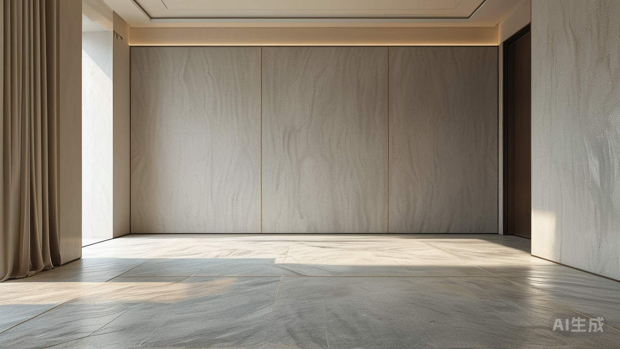 它更深谙空间的韵律之道。在玄关狭长入口,一左一右两道平行波打线,便如无形之手悄然推开两侧墙壁,瞬间营造出豁然开朗的迎接气息;在客厅大地毯边缘处,一道同色波打线轻巧围合,地毯的华美便似被悄然托起,在地面之上温柔悬浮,空间层次如涟漪般漾开。 波打线的色彩与质地,更是空间情绪的缄默低语。当素雅浅灰地面铺开,一道沉稳古铜色波打线蜿蜒其上,立时沉淀出空间的厚重质感;而纯白空间里,几道纤巧精致的金色金属线条掠过地面,顷刻便点亮了满室轻灵与贵气。波打线自身质地的变幻同样暗藏玄机:温润哑光的,默默融入背景,只在光影起伏时含蓄显露其边界;光滑亮泽的,则如一道流动的光轨,悄然牵引目光的流向,成为空间里无声的向导。