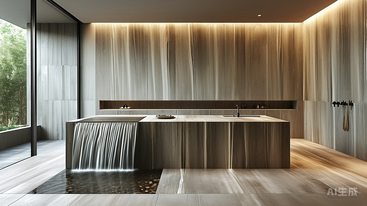 大板之选,贵在与空间共鸣。纹理走向当随空间尺度而动,纵向纹路引视线上升,横向延展则推远空间边界。色调深浅更需思量,深色如大地般沉静,奠定厚重气魄;浅色则如天光流转,拓展空间意境。再辅以精心点缀的金属线条或同源石材细部,气派中顿生层次精妙。