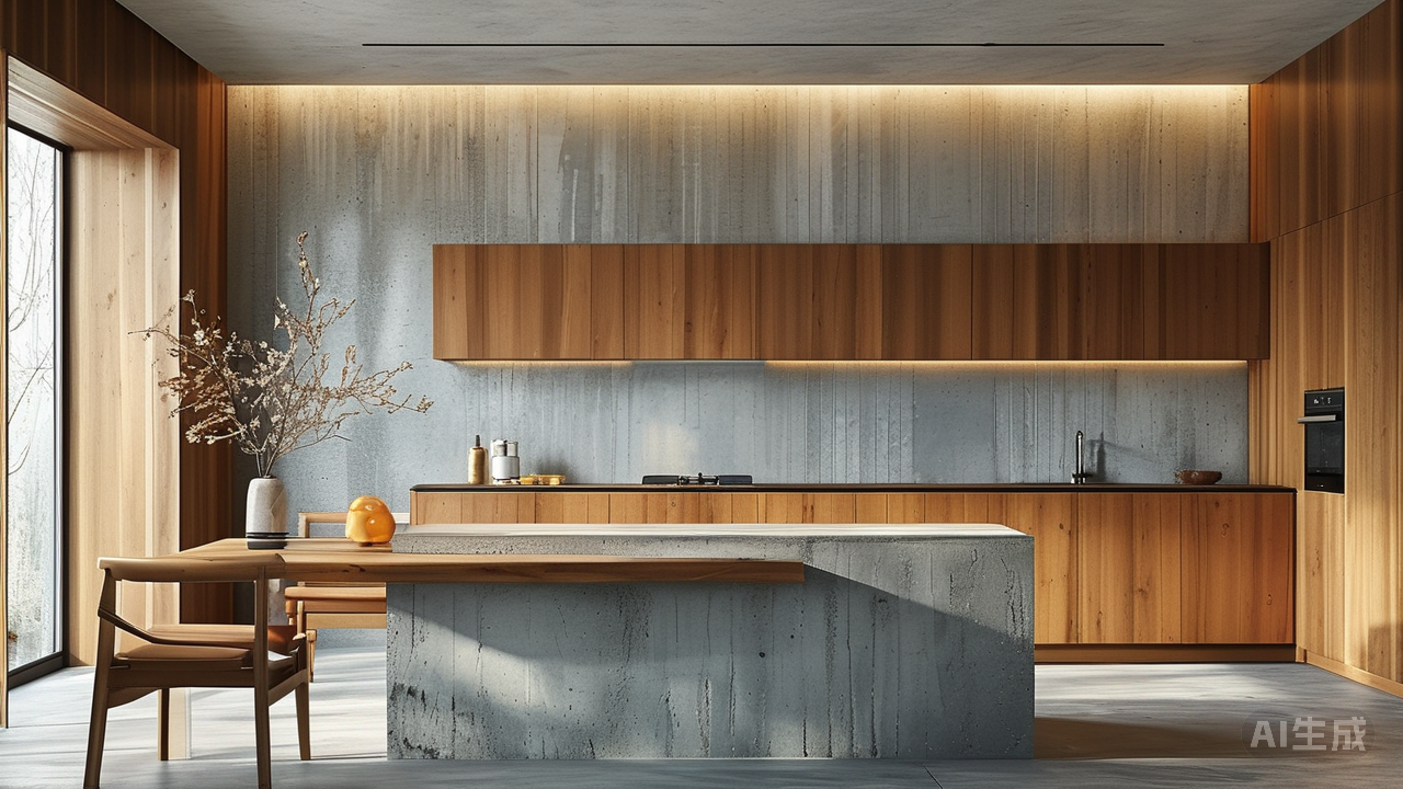 材质与色彩的和谐协奏 防溅板与背景墙,常需和谐共处。材质过渡要自然流畅:若防溅板选用了哑光砖,上方背景墙可延续其色调,尝试更大规格、更细腻的肌理;若防溅板色彩浓郁,背景墙则可用中性色调或同色系深浅变化来承接,避免断裂感。大胆者,不妨尝试跳脱材质——防溅板用温润木纹砖,上方背景墙配以冷峻的水泥质感大板,碰撞间生发出独特张力。色彩是无声的诗篇,浅色系营造明亮开阔,深色系带来深邃静谧,莫兰迪色系则尽显温柔内敛。选择,应呼应厨房整体氛围与你的审美主张。