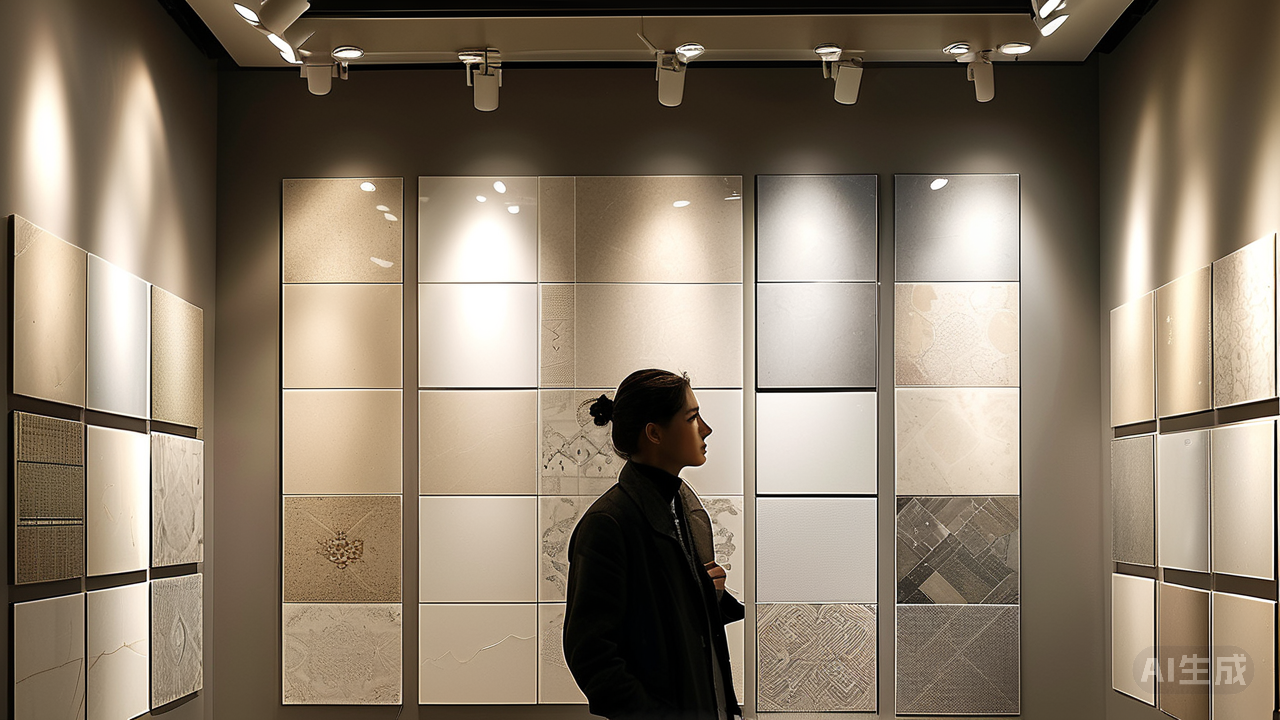 为什么展厅和家里的瓷砖效果天差地别?光源与空间的考量在灯光如昼的展厅里,那款瓷砖如同沉睡的宝石被唤醒:纹理细腻灵动,色泽温润饱满,仿佛一块天然石料正静静呼吸。你满心欢喜将它迎入新家,可当铺上地面或墙面的一刻,心底不免微微一沉——那些鲜活的肌理怎地如此黯淡?光泽仿佛蒙尘,空间也似被压缩了一圈。明明是同一块瓷砖,为何在展厅与家居环境中竟判若两人?